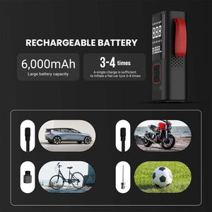 - Delivers up to 150psi of pressure, suitable for car tyres, motorbikes, bicycles, sports equipment, and more.